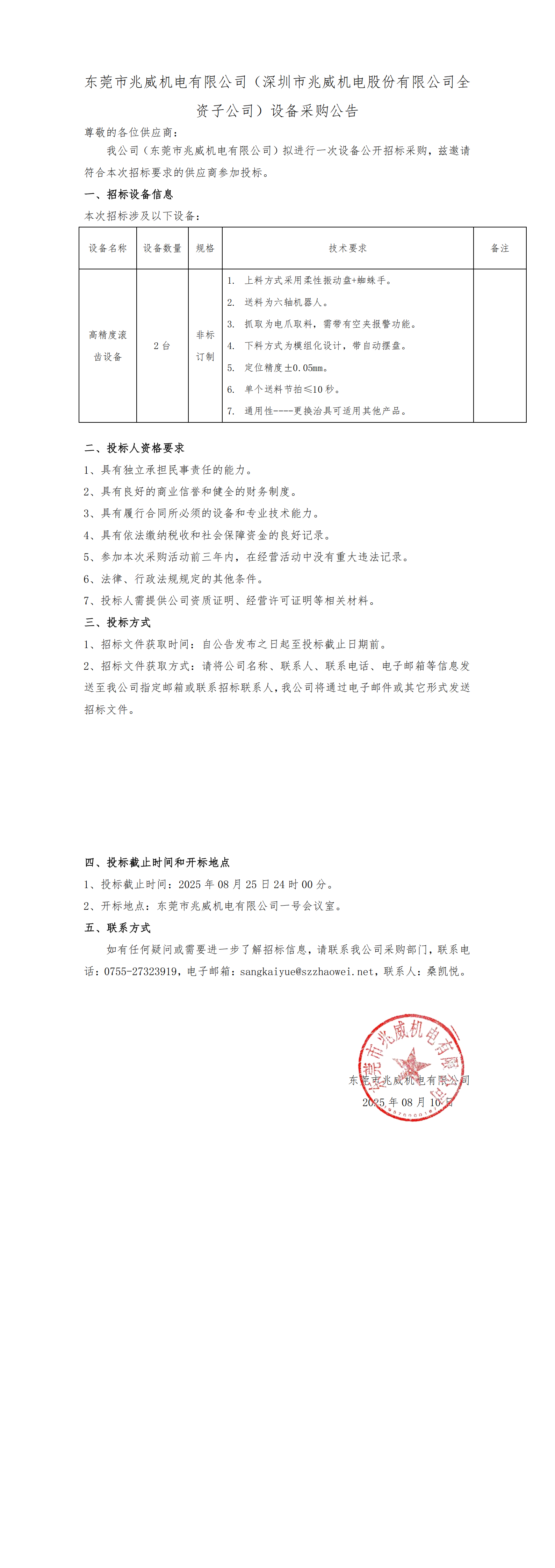 主頁 > 招標中標發(fā)布 > 東莞市兆威機電有限公司滾齒機設備采購公告